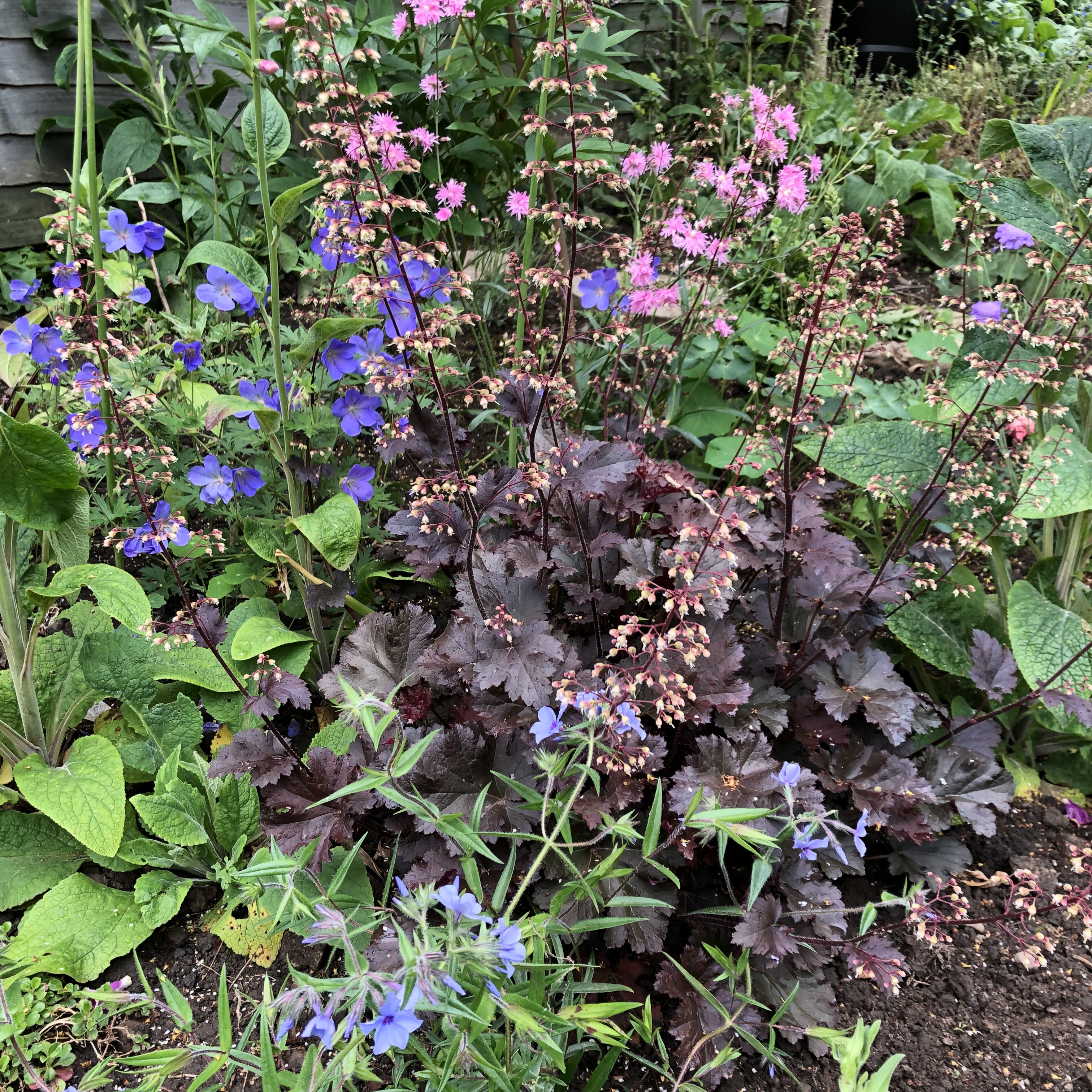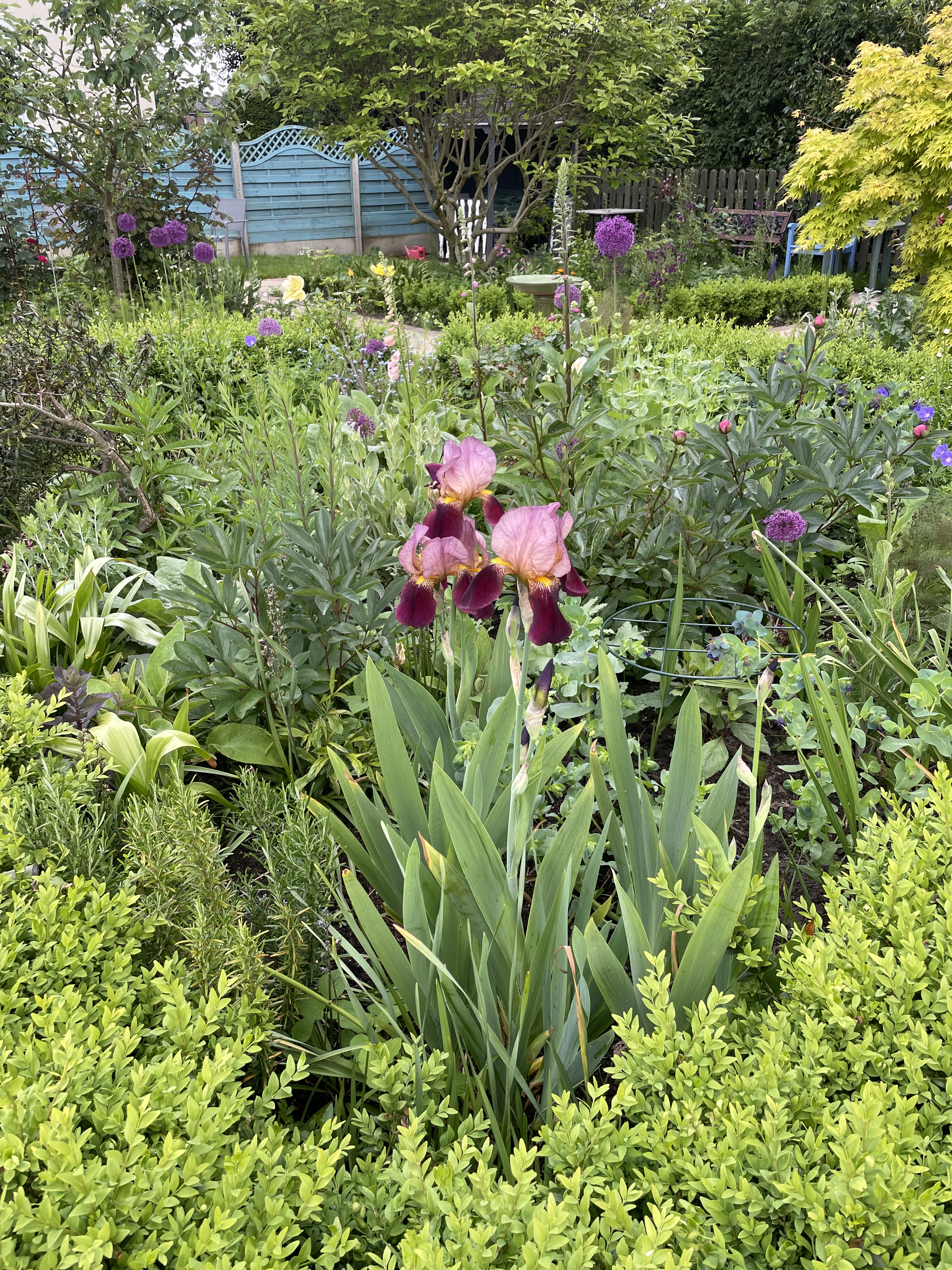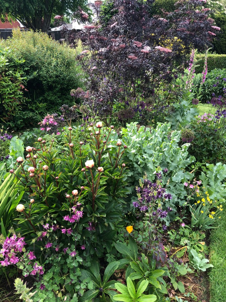 Client garden: A large suburban garden, mainly planted to perennials, with small spinney, soft fruits and orchard. Focus was on plants, with some unusual varieties and various specimen trees.